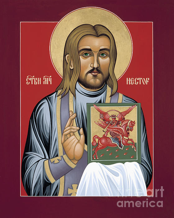Oh Nestor.....I heard his story at the Russian church in Albuquerque. He was a priest monk in Zharky, Russia killed on New Year's Eve 1993. He was a tough kid who was converted by older Russian men, his photos radiate holiness. I was Honored to paint him, his feast is December 17