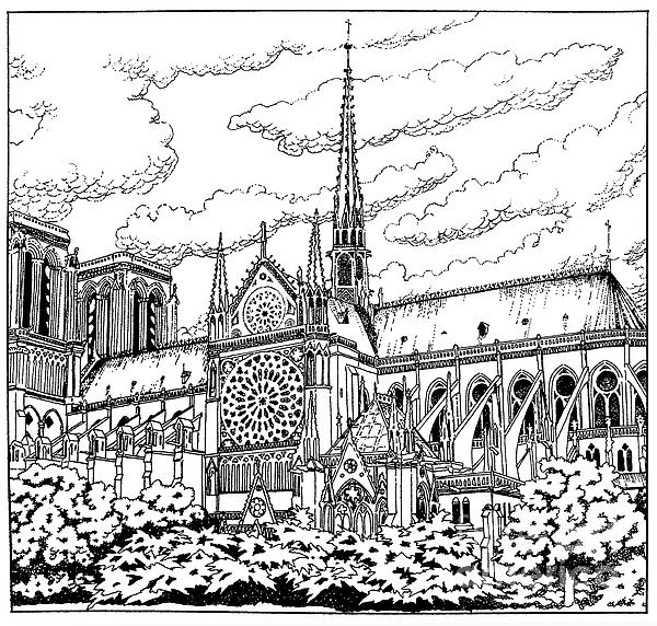 Illustration of Cathedral of Notre Dame in Paris from The Cathedral Book, Paulist Press 1982.